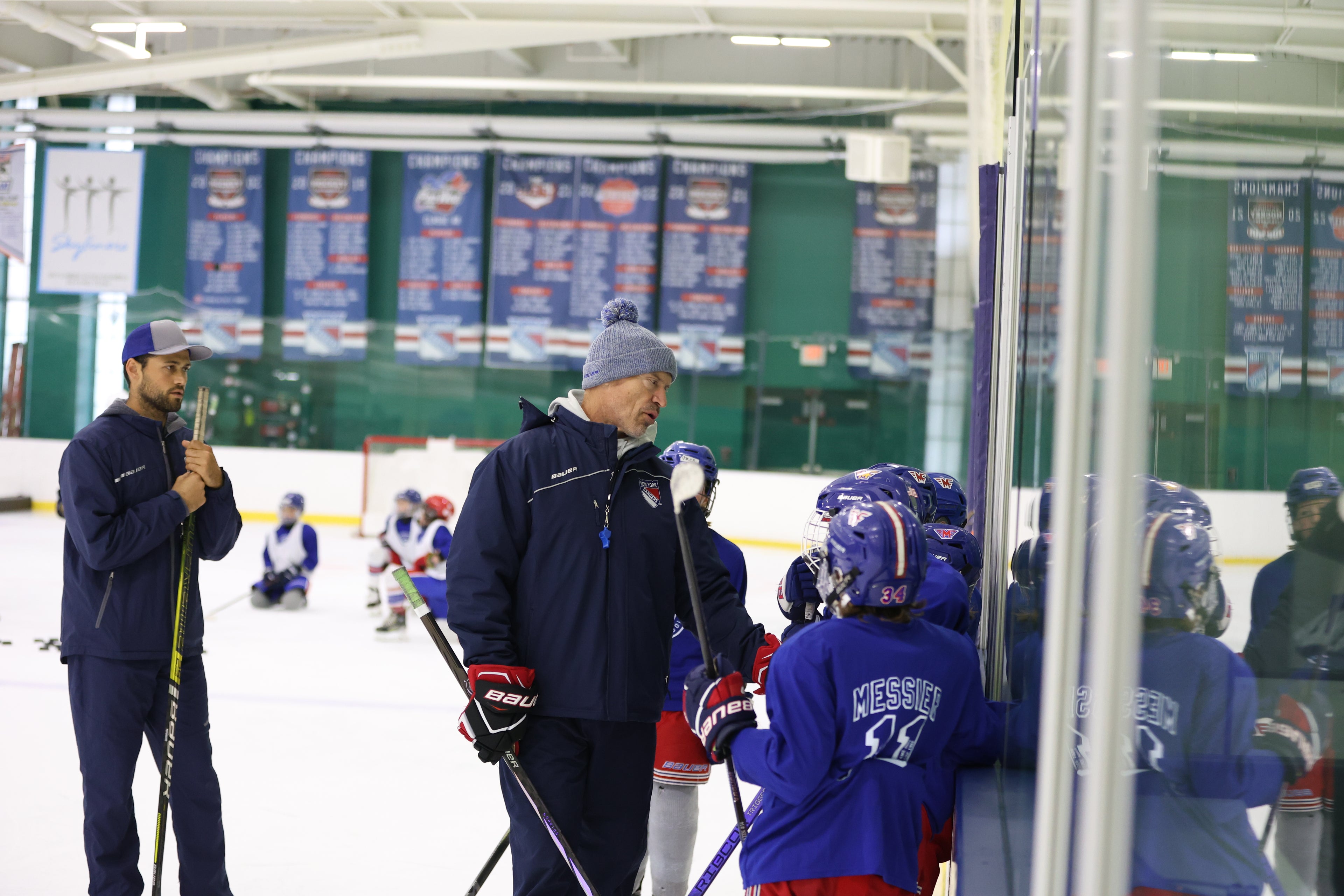 Each player will be able to skate with Mark. He joins on-ice skill sessions, coaches the games, and refs the instructional scrimmages.